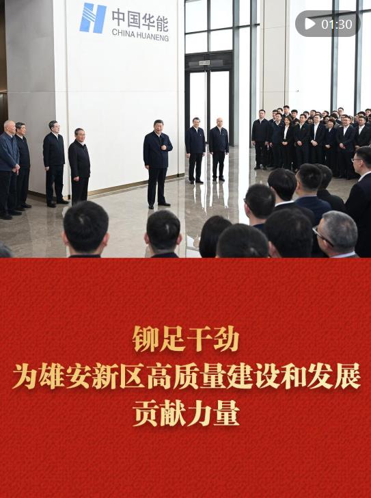 3月23日,習(xí)近平總書記來到河北雄安新區(qū),察看啟動區(qū)建設(shè)進(jìn)展,考察中國華能集團(tuán)有限公司,了解雄安新區(qū)建設(shè)發(fā)展情況,親切慰問入駐和在建疏解單位干部職工代表?! ?/p>