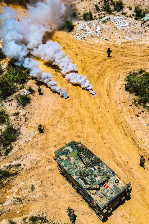 陸軍第73集團軍某旅“強軍精武紅四連”組織官兵開展連貫戰(zhàn)術(shù)訓(xùn)練(2023年5月30日攝)。