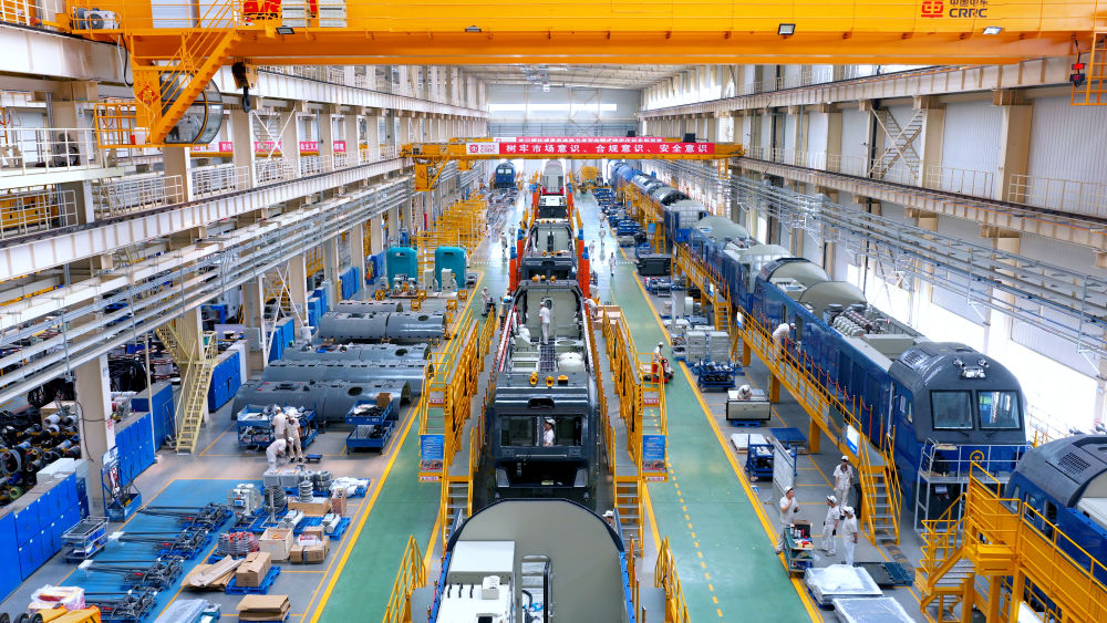 2025年8月12日,在中車大連機(jī)車車輛有限公司,工作人員正在進(jìn)行總裝作業(yè)。(受訪單位供圖)