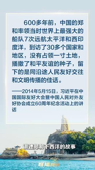 古有鄭和船隊(duì)“共享太平之?!钡暮推竭h(yuǎn)航,今有高質(zhì)量共建“一帶一路”惠及多國(guó)發(fā)展。穿越古今,和平發(fā)展、共同繁榮的價(jià)值追求,早已根植于中華民族的血脈與基因中,一脈相承。