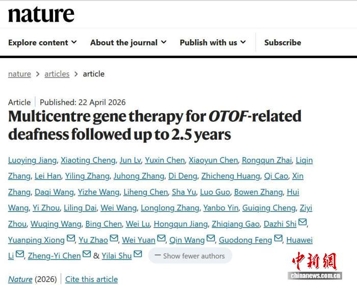 長期以來,所有先天性耳聾均沒有獲批治療藥物。記者23日在此間采訪了解到,北京時間4月22日深夜,中國醫(yī)學(xué)專家團(tuán)隊在國際期刊《自然》(Nature)在線發(fā)表針對OTOF先天性耳聾的基因治療研究成果。