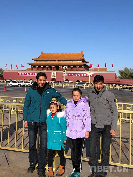 圖為離京前洛桑曲宗和次旦德吉與家人在天安門(mén)廣場(chǎng)留影 共鑄中國(guó)心組委會(huì)供圖