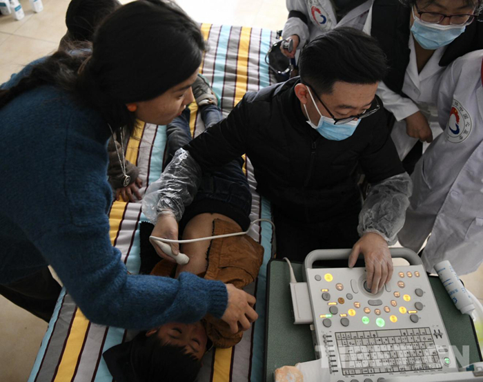 醫(yī)療隊(duì)和志愿者們不顧舟車勞頓和高原反應(yīng)的不適,認(rèn)真地對(duì)每一位前來篩查的小朋友進(jìn)行詳細(xì)的詢問和認(rèn)真的檢查。對(duì)于有疑似癥狀的患者則現(xiàn)場(chǎng)利用從北京帶來的先進(jìn)設(shè)備進(jìn)行彩超診斷,并耐心和每一位患者家屬進(jìn)行交流和講解,在每個(gè)工作細(xì)節(jié)上精益求精。