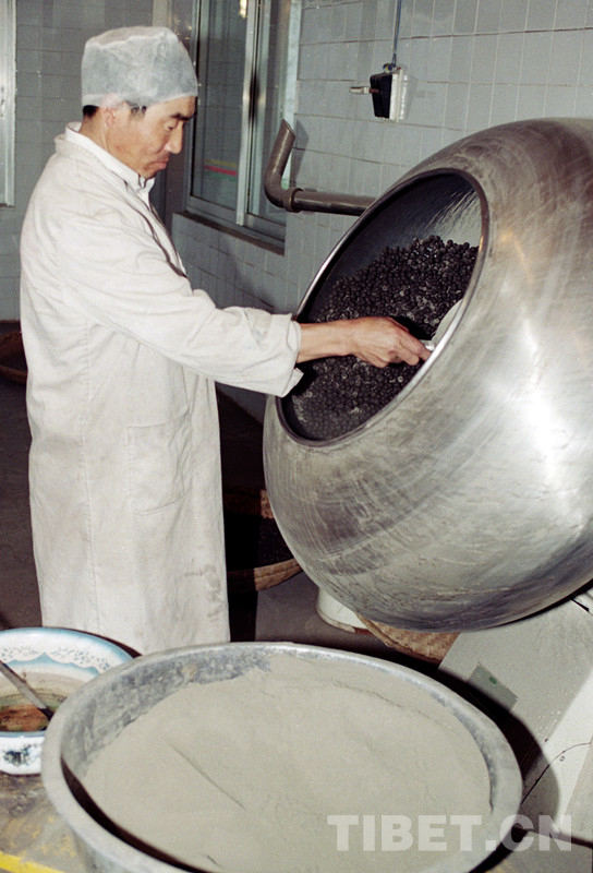 這是西藏昌都地區(qū)利民藏藥廠工人正在生產(chǎn)藏藥。該藏藥廠曾被人事部和國(guó)家醫(yī)藥管理局授予全國(guó)醫(yī)藥系統(tǒng)先進(jìn)單位稱號(hào)(唐召明1998年攝)