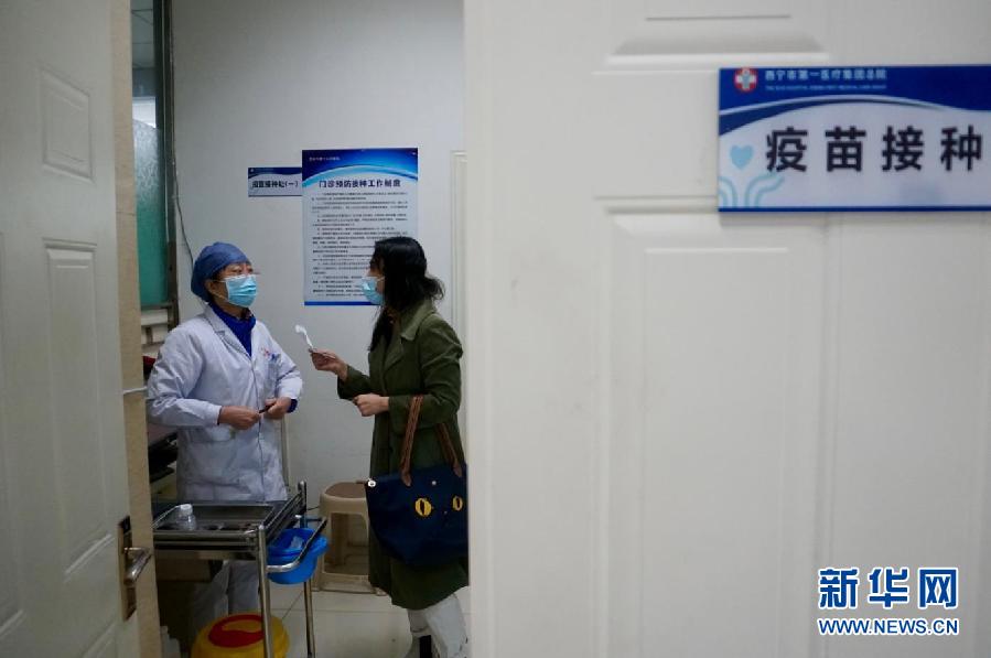 2021年1月5日,在青海省西寧市第一人民醫(yī)院,醫(yī)護(hù)人員向接種人員告知接種新冠疫苗后的注意事項。新華社記者 央秀達(dá)珍 攝