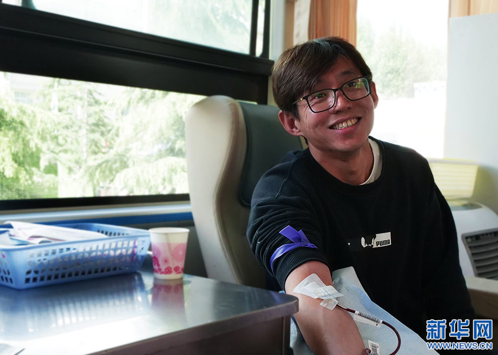 5月27日,來(lái)自北京協(xié)和醫(yī)院的援藏專家楊筱在獻(xiàn)血。(新華網(wǎng) 旦增努布攝)