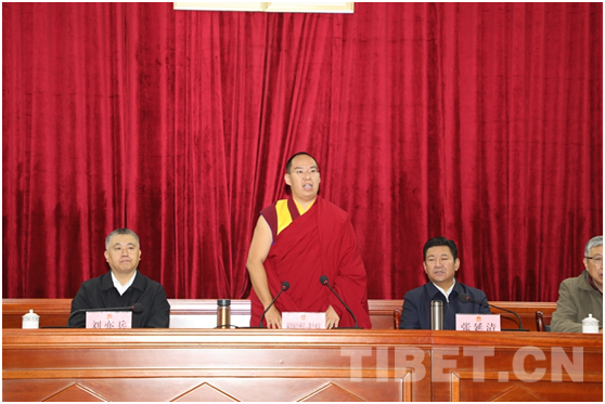 全國(guó)政協(xié)常委、中國(guó)佛教協(xié)會(huì)副會(huì)長(zhǎng)、中國(guó)佛教協(xié)會(huì)西藏分會(huì)會(huì)長(zhǎng)、援助西藏發(fā)展基金會(huì)理事長(zhǎng)班禪額爾德尼 確吉杰布參加活動(dòng)啟動(dòng)儀式并作講話。