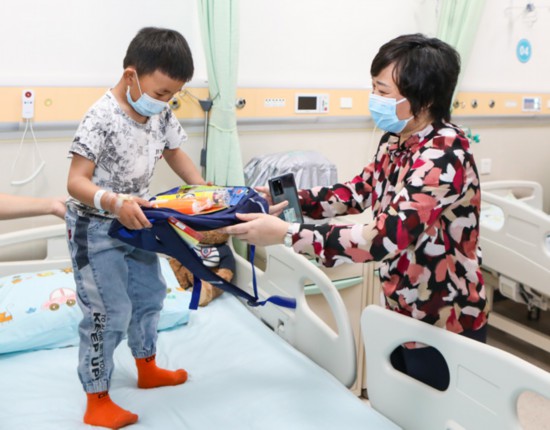 鄧?yán)蚋敝魅我恍锌赐藖碛逯委煹?5位患兒,并為他們送上嶄新的書包和文具。并與患兒家長(zhǎng)熱情交談,詳細(xì)了解患兒恢復(fù)情況?;純杭覍俅碜楷敽屯贩謩e向重慶市衛(wèi)健委和重醫(yī)附屬兒童醫(yī)院贈(zèng)送了錦旗,并獻(xiàn)上了潔白的哈達(dá)表示感謝。
