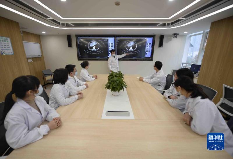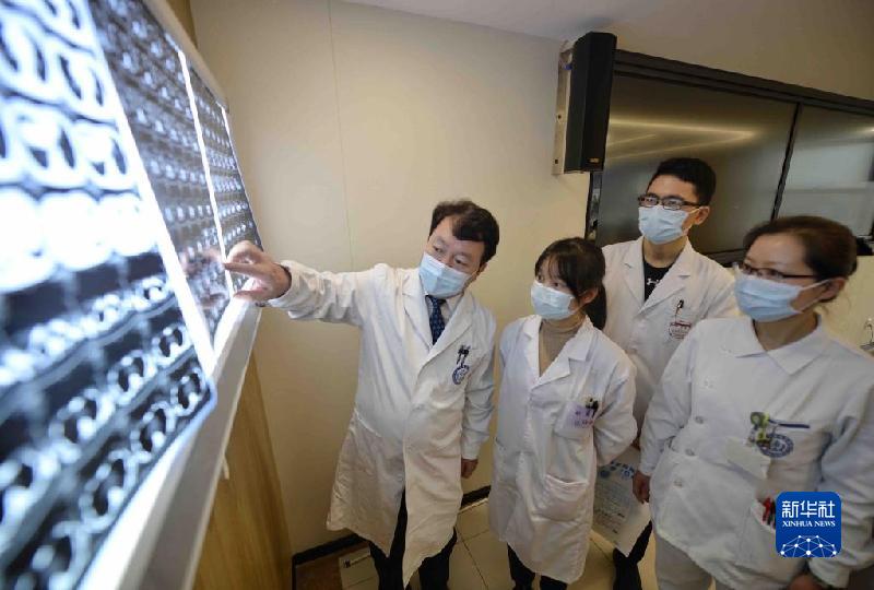 12月3日,在四川大學華西醫(yī)院,王文濤(右四)在與醫(yī)務人員討論病人治療方案。新華社記者 劉坤 攝