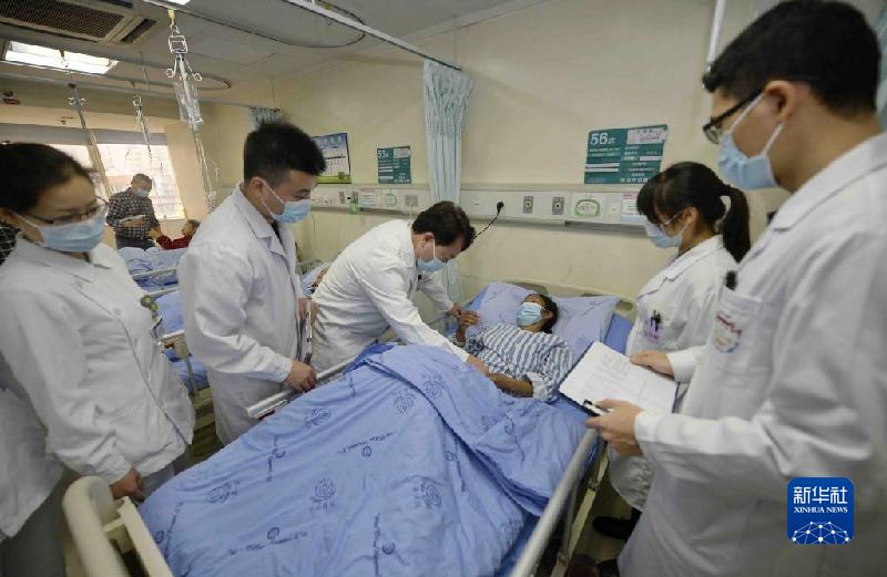 12月3日,在四川大學華西醫(yī)院,王文濤(中)在病房內(nèi)查看包蟲病患者病情。新華社記者 劉坤 攝