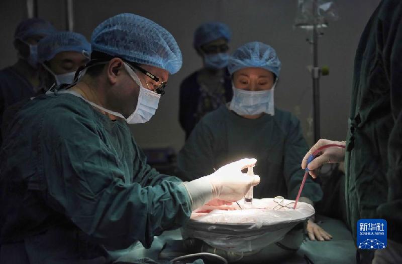 2020年1月16日,在甘孜州人民醫(yī)院,王文濤(左)進行“體外肝切除聯(lián)合自體肝移植手術”。新華社記者 劉坤 攝