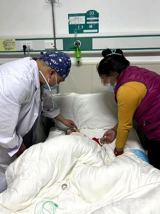 手術順利結束,看著醫(yī)護人員把才巴央措從手術室推出來,母親卓巴雙手合十并不停對著醫(yī)護人員說 “噶真切”“噶真切”,醫(yī)護人員也面帶欣慰的微笑,用一兩句簡單的藏語回應著卓巴,看著病床上熟睡的才巴央措,卓巴輕撫孩子臉頰哽咽落淚。