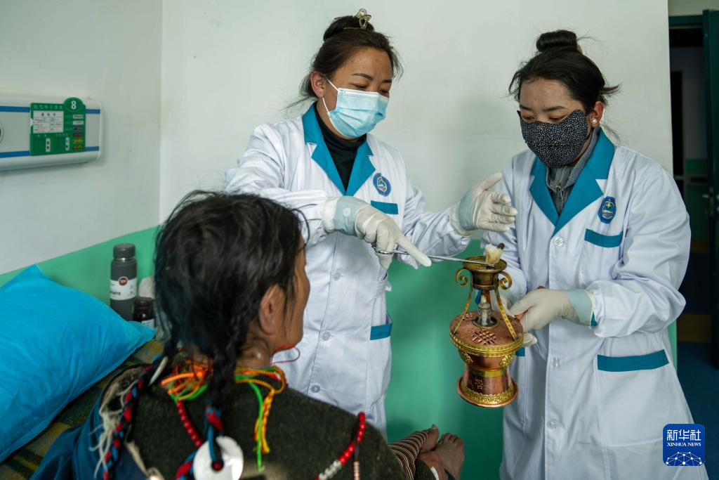 申扎縣藏醫(yī)院醫(yī)生給病人進行診療(1月7日攝)。新華社記者 旦增尼瑪曲珠 攝