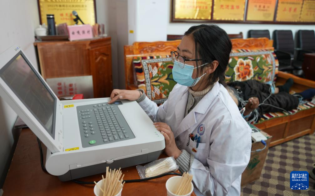 1月24日,西藏大學醫(yī)學院的研究生給患者檢查身體。新華社記者 晉美多吉 攝