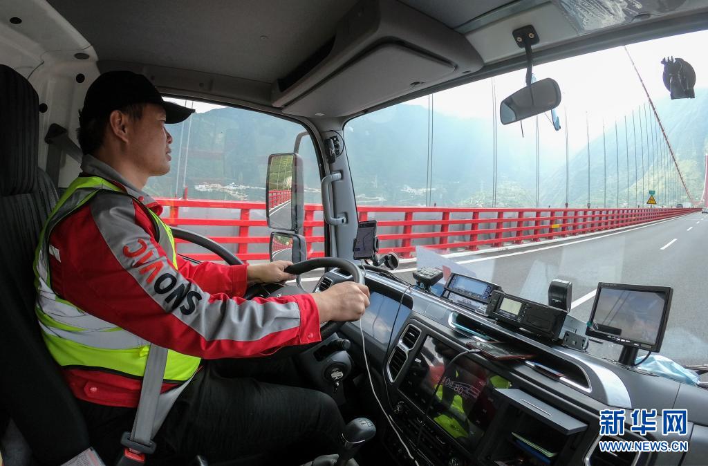 7月22日,司機(jī)劉思駕駛運(yùn)送疫苗的冷鏈車經(jīng)過大渡河。新華社記者 彭子洋 攝