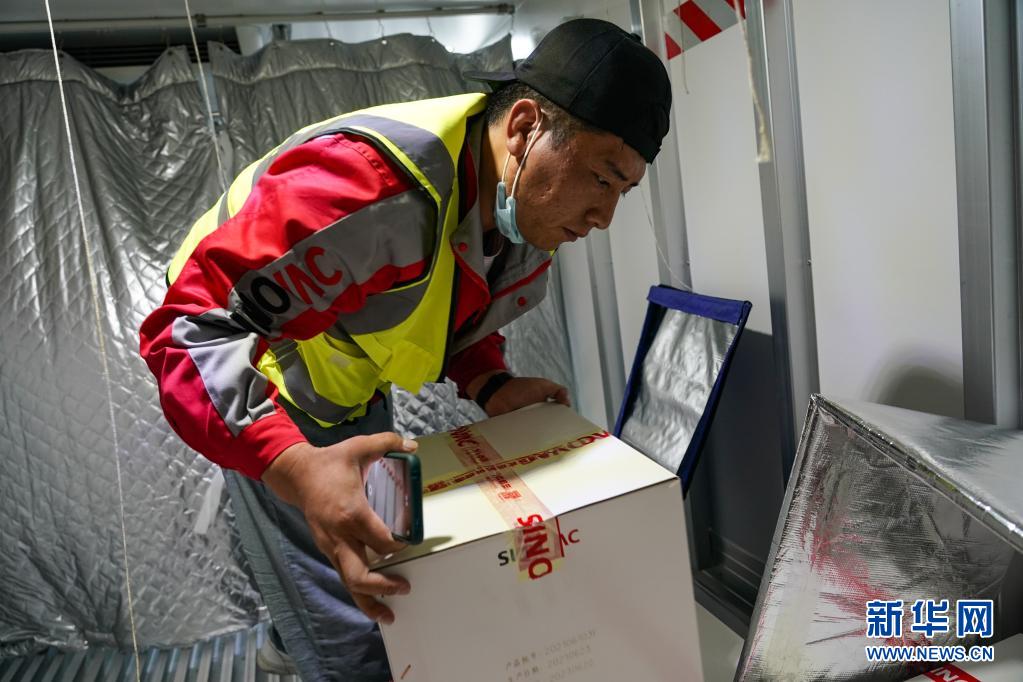 7月22日,蘆艷會(huì)在冷鏈車內(nèi)將疫苗搬出,準(zhǔn)備交付給四川甘孜州疾控中心。新華社記者 陳鐘昊 攝