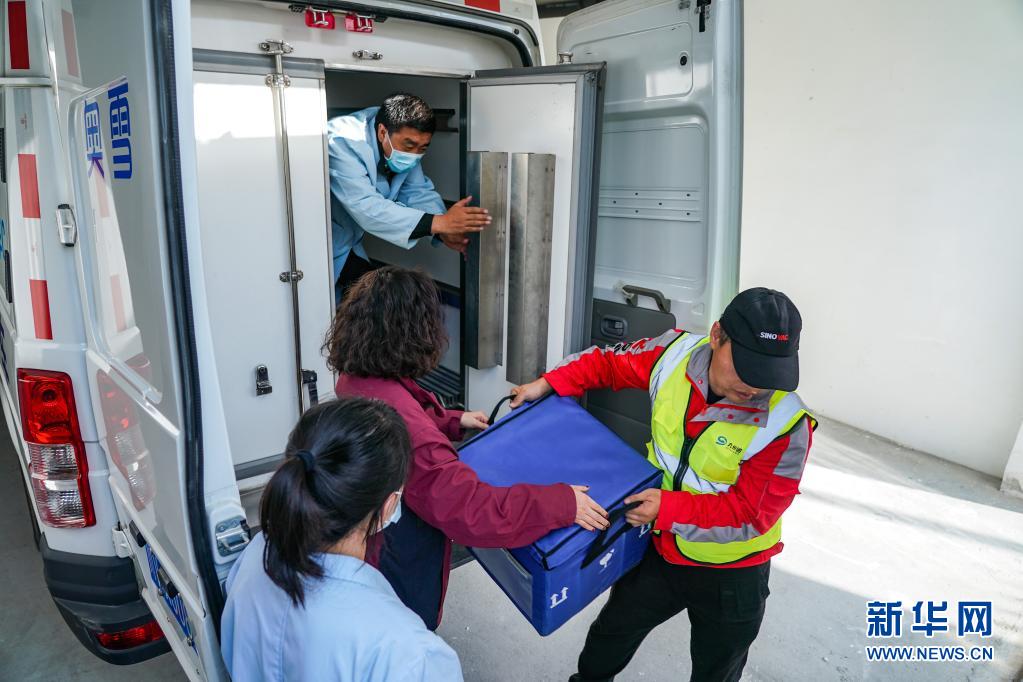 7月22日,在四川甘孜州疾控中心,工作人員將疫苗搬入當(dāng)?shù)氐睦滏溰嚒P氯A社記者 彭子洋 攝