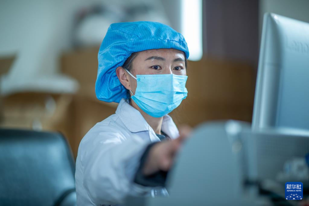 普倉(cāng)決在檢查藏藥中控(4月16日攝)。新華社記者 旦增尼瑪曲珠 攝