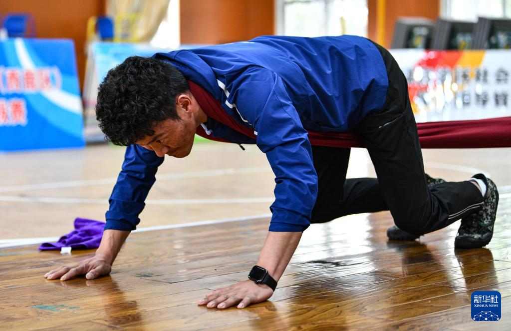 5月9日,林芝隊(duì)選手多杰扎巴參加押加選拔賽。新華社記者 晉美多吉 攝