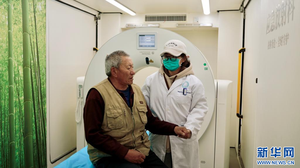 12月3日,醫(yī)護(hù)人員在雅礱物交會(huì)義診現(xiàn)場(chǎng)協(xié)助群眾進(jìn)行CT檢查。周昱龍 攝