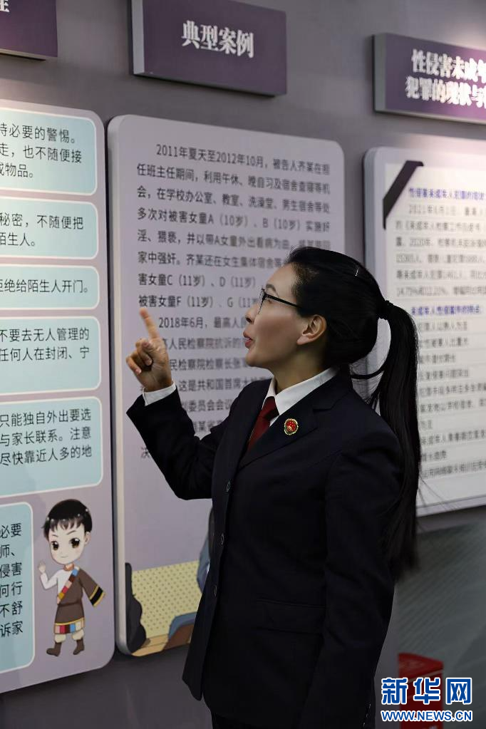 在城關(guān)區(qū)青少年法治實(shí)踐教育基地里,“格桑梅朵護(hù)未隊(duì)”成員羅布卓瑪在講解。拉薩市城關(guān)區(qū)人民檢察院供圖