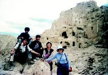 本文作者(中)在阿里古格考察時與著名作家馬麗華(右二)和南希教授(右一)等人的合影
