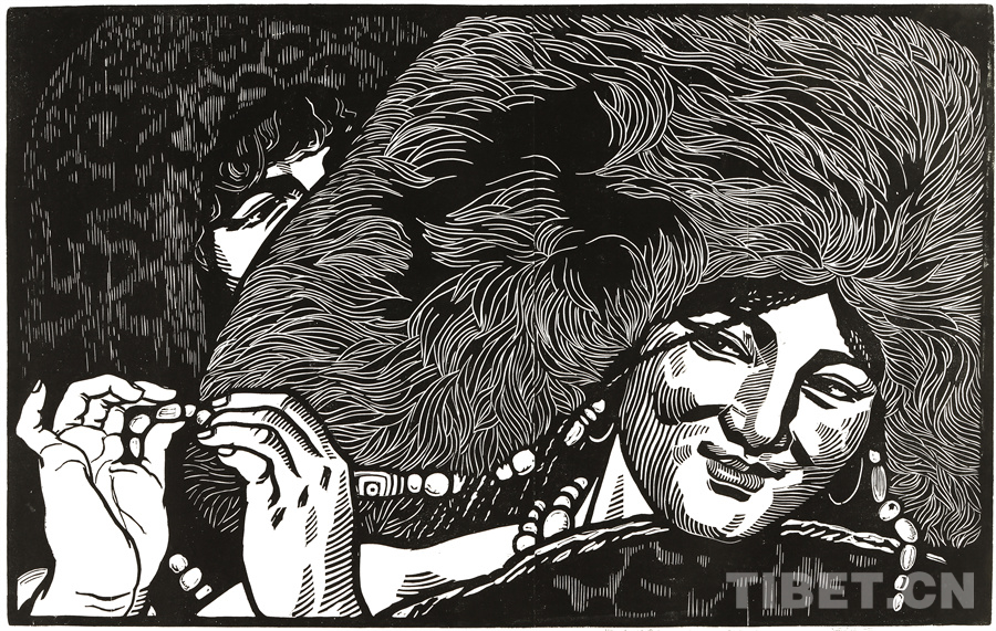 這些年來可以肯定的是我的創(chuàng)作道路和方向是基本對頭的。前幾年有人寫文章評論說,在外來思想影響已很豐富、多元化格局已經(jīng)形成的情況下,差不多只有版畫還恪守著現(xiàn)實(shí)主義的創(chuàng)作道路,而且在美術(shù)領(lǐng)域起到了導(dǎo)向作用。順便為版畫說句話:搞版畫的人一直尊重生活,認(rèn)定生活是第一性的,版畫一開始就是在革命的環(huán)境中發(fā)生、發(fā)展起來的。版畫隨著四大發(fā)明發(fā)源于中國的土壤,后來被歐洲發(fā)展了,反過來又影響到中國。老大的中國有發(fā)明權(quán),但并沒有把它發(fā)展起來。魯迅先生為了推動(dòng)版畫的發(fā)展,特別介紹了德國版畫和俄羅斯版畫為代表的版畫代表作和代表人物,還有美國的肯特,比利時(shí)的麥綏萊爾。介紹文字很精彩,無論對生平、對作品的介紹都很精彩。他推出的那些版畫大師,至今仍巍然屹立在美術(shù)史上。他對版畫的深刻而獨(dú)到的理解很可貴。國外有些不很知名但有好作品的,他也介紹到。而且給我們指出哪些是范本,我們一看果然耳目一新。魯迅先生的提倡影響了中國版畫的發(fā)展,進(jìn)入了一個(gè)嶄新的階段,形成所謂新興版畫。這段時(shí)間并不長,也就六七十年吧。版畫統(tǒng)領(lǐng)潮流,面向生活的潮流。所以它的路子就很正,這個(gè)正就是正統(tǒng),一直發(fā)展得很健康。我從小就受影響,我當(dāng)時(shí)所看到的版畫都是反映民間生活的東西:戰(zhàn)爭年代反映民間的疾苦與災(zāi)難,和平年代反映民眾的感情和生活,所表現(xiàn)的風(fēng)景也由平常人眼中投射。一句話就是為人民服務(wù)指導(dǎo)下的藝術(shù)創(chuàng)作。如果問我的作品和生活的距離有多大,可說距離是小的,并未受到更多潮流的干擾,并未背離為人民服務(wù)的方向。正因如此,我要把西藏題材表現(xiàn)好,表現(xiàn)在一個(gè)理想的藝術(shù)高度上,而且這一高度還能讓一般欣賞者達(dá)到。我的理想就是這樣,要達(dá)到這一目標(biāo)看來還很費(fèi)勁。