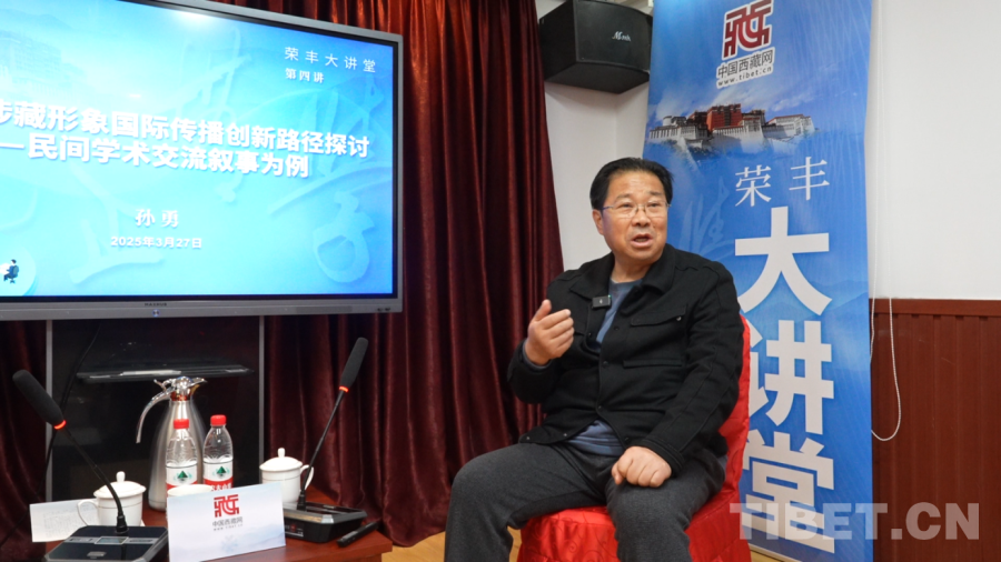 3月27日,四川師范大學教授、博士生導師孫勇應邀做客中國西藏信息中心“榮豐大講堂”,圍繞《新時代涉藏形象國際傳播創(chuàng)新路徑探討——以跨國民間學術(shù)交流敘事為例》主題作專題報告,為提升涉藏國際傳播效能提供理論支持與實踐路徑。