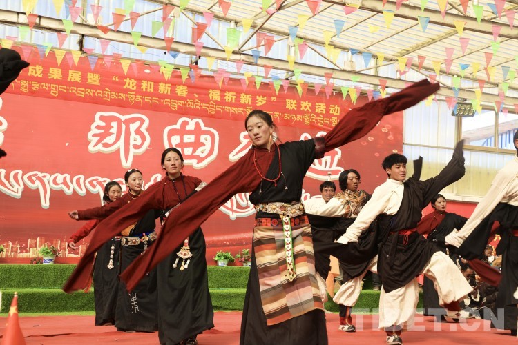 中國西藏網(wǎng)訊 2月10日,中國西藏信息中心“新春走基層”青藏線采訪組一行,來到西藏自治區(qū)那曲市安多縣灘堆鄉(xiāng),適逢當?shù)卦谂e辦灘堆鄉(xiāng)第二屆“鄉(xiāng)村振興 那曲奮進”藝術(shù)成果展暨“龍和新春、福祈新歲”聯(lián)歡活動。采訪組一行來到鄉(xiāng)政府對面的灘堆鄉(xiāng)文化站,記者在現(xiàn)場看到許多穿著具有當?shù)孛褡逄厣椀娜嗽诖司奂?。在好奇心的?qū)使下,經(jīng)詢問當?shù)馗刹坎胖?,為喜?024春節(jié)和藏歷新年,感激黨和國家的關(guān)心關(guān)懷,歌頌如今來之不易的幸福生活,鄉(xiāng)村文藝隊特此精心準備了文藝節(jié)目,以嶄新的面貌和昂揚的精神展現(xiàn)新時代牧民群眾的精神風貌和幸福生活。