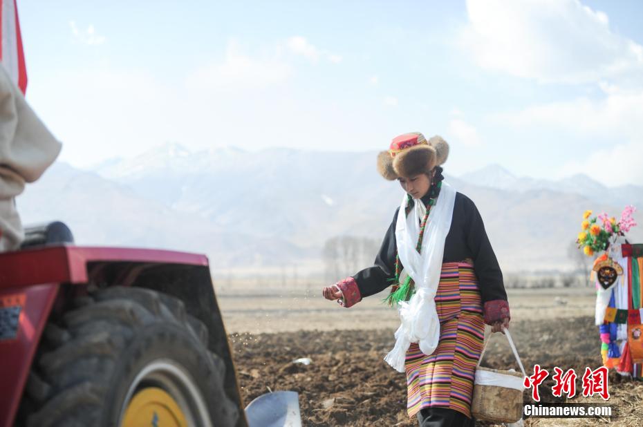當(dāng)日是西藏農(nóng)民舉行一年一度春耕大典的日子。村民沿襲著傳承千年的春耕民俗,身著節(jié)日盛裝,手捧“切瑪”(五谷豐登斗),唱起祈愿歌,互敬青稞酒。當(dāng)鐵犁翻開(kāi)土地,婦女將手中的種子撒下,祈求新的一年豐收。