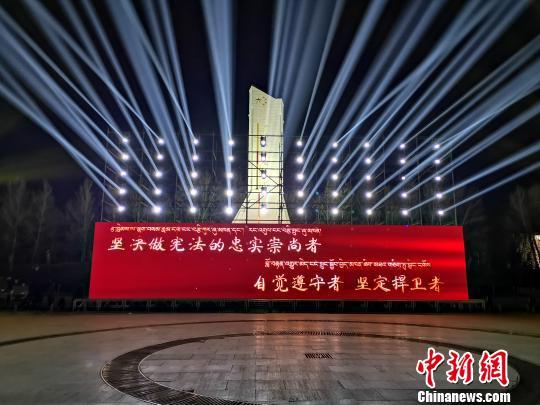 12月3日晚8時,在近千名拉薩各族民眾的見證下,80盞LED集束燈同時向布達拉宮和四周投射出絢麗的燈光,與此同時,現(xiàn)場的LED大屏幕開始倒計時,一場“法治燈光秀”就此拉開了序幕。