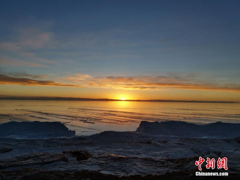 俯瞰冬日青海湖現(xiàn)冰封奇觀