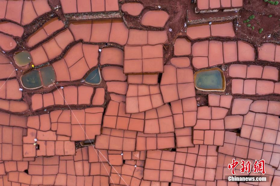 當(dāng)?shù)孛癖娫跒憸娼祥_山鑿井,取出巖層深處含鹽的鹵水倒入鹽田,經(jīng)陽光蒸曬、風(fēng)干,結(jié)晶成鹽。何蓬磊 攝