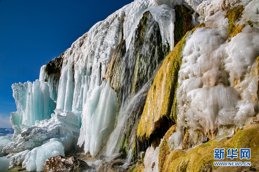 寒冬時(shí)節(jié),位于青海省海北藏族自治州門源回族自治縣境內(nèi)的崗什卡雪峰冰瀑,風(fēng)光綺麗,美不勝收。