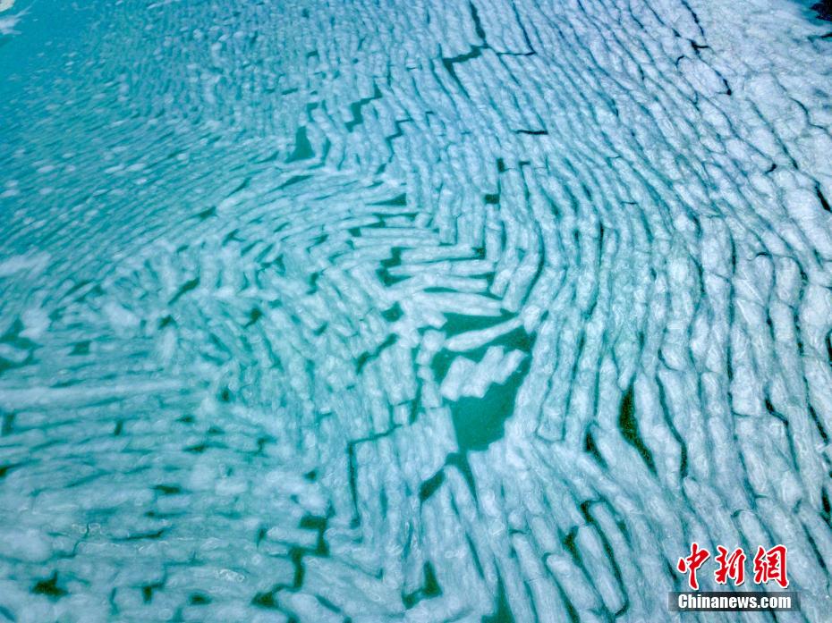 1月31日,攝影師在使用無(wú)人機(jī)航拍麻米湖時(shí)發(fā)現(xiàn),部分湖冰凍裂成“指紋狀”,十分神奇、壯觀。圖為麻米湖凍成了“指紋狀”。 曹枝清 攝