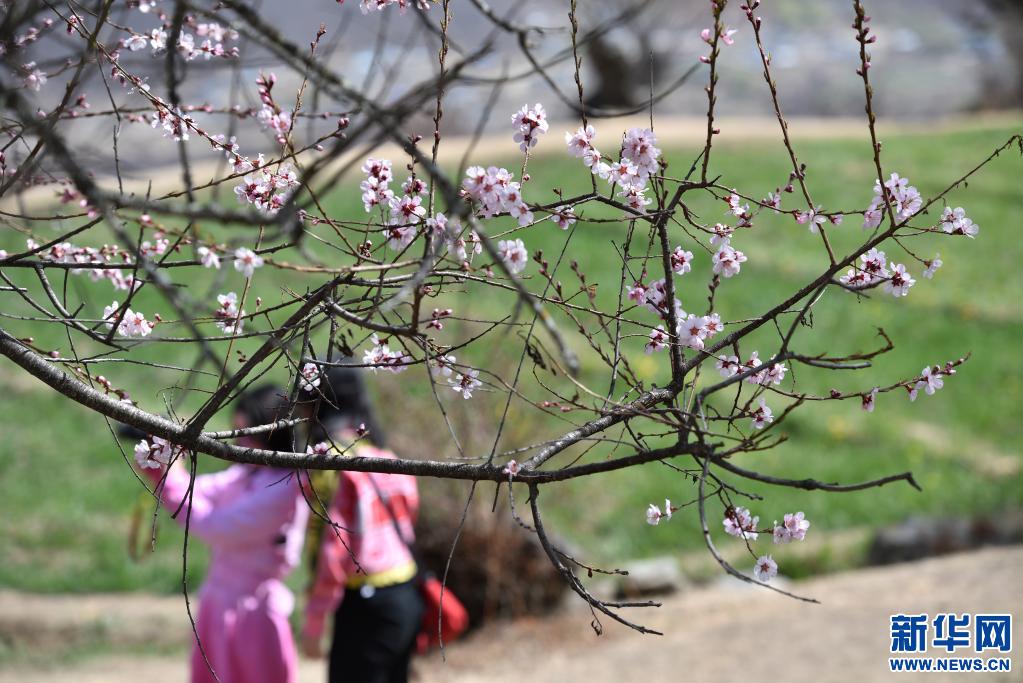 3月28日,游客們來(lái)到西藏自治區(qū)林芝市索松村欣賞桃花。新華社記者 孫瑞博 攝
