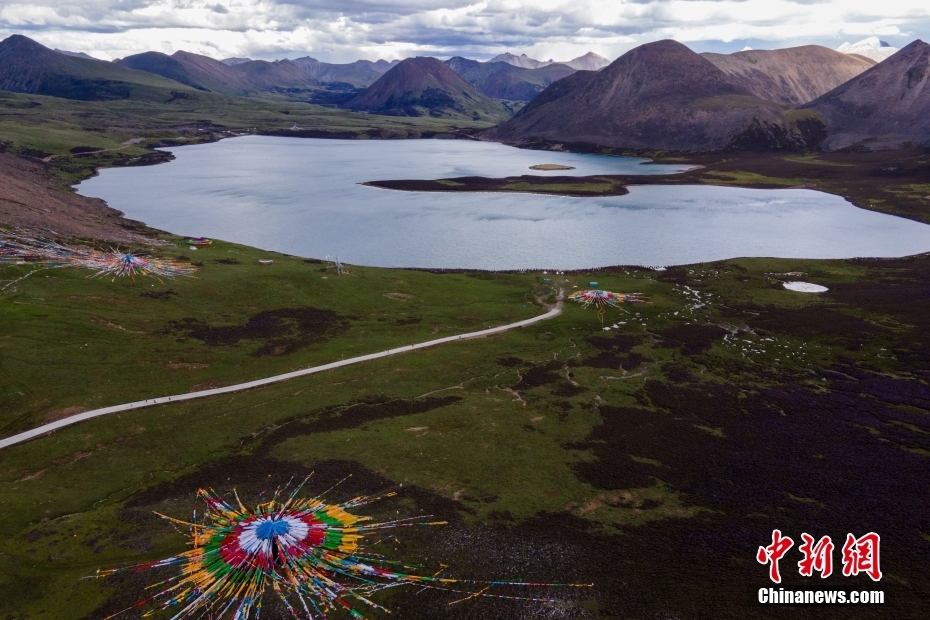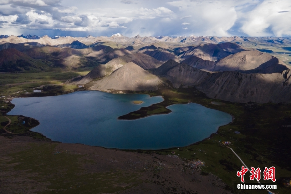 6月23日,思金拉措湖風(fēng)光秀麗。思金拉措位于西藏墨竹工卡縣日多鄉(xiāng),海拔4500多米,周邊群峰簇擁,地形猶如聚寶盤,不少民眾將其稱為西藏的“財神湖”。(無人機照片) 中新社記者 江飛波 攝