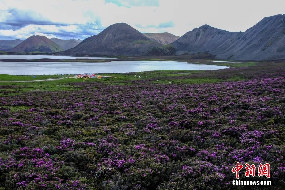 6月23日,思金拉措湖畔紫色鮮花盛開,景色秀麗。思金拉措位于西藏墨竹工卡縣日多鄉(xiāng),海拔4500多米,周邊群峰簇擁,地形猶如聚寶盤,不少民眾將其稱為西藏的“財神湖”。 中新社記者 江飛波 攝