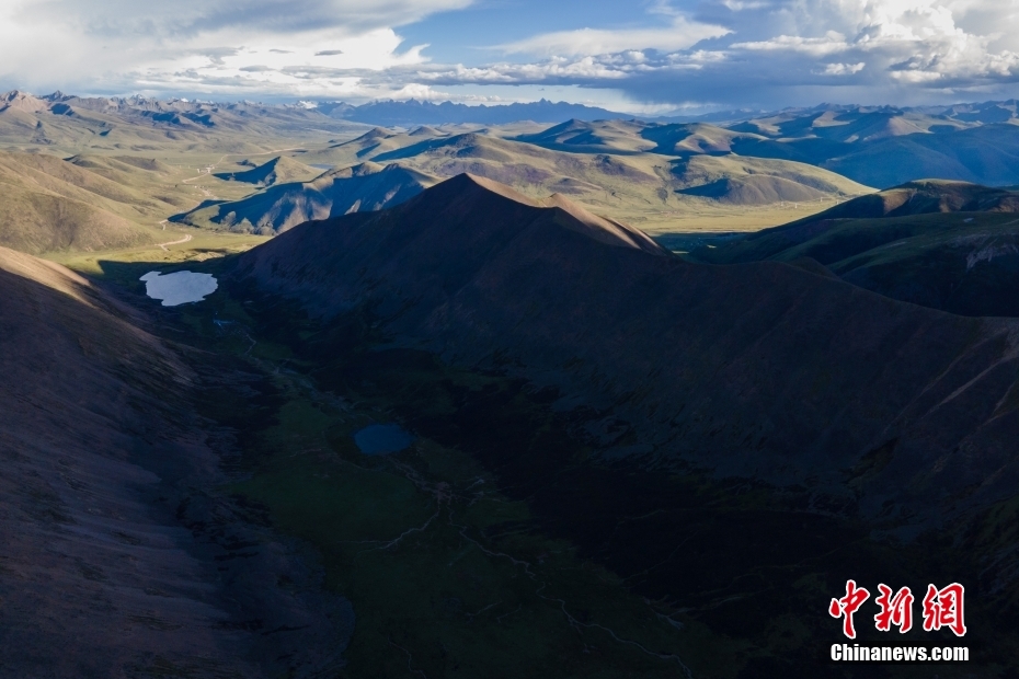 6月23日,思金拉措湖邊高原山脈風(fēng)光。思金拉措位于西藏墨竹工卡縣日多鄉(xiāng),海拔4500多米,周邊群峰簇擁,地形猶如聚寶盤,不少民眾將其稱為西藏的“財神湖”。(無人機照片) 中新社記者 江飛波 攝