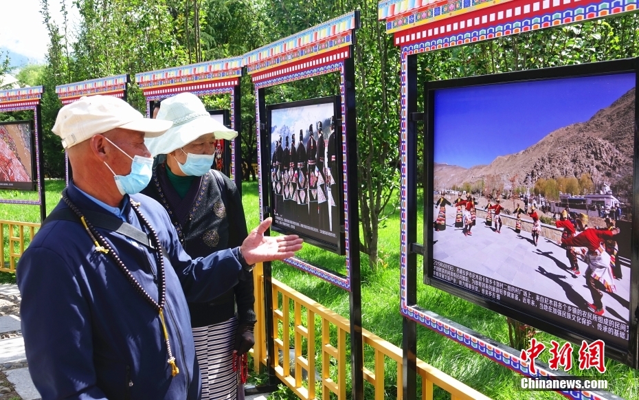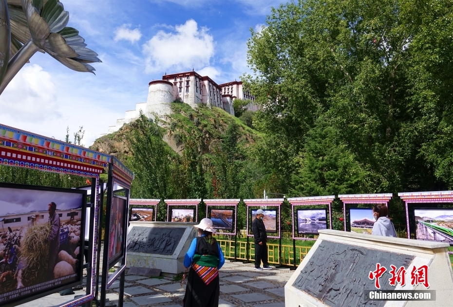 8月26日,參觀者在拉薩市宗角祿康公園觀賞“西藏·70——慶祝西藏和平解放70周年影像展”。該展覽分為“波瀾壯闊的歷史進程”“新時代的輝煌成就”兩部分,編選了時間跨度達70年的200余幅攝影作品,集中展現(xiàn)了西藏70年來社會發(fā)展巨變、輝煌建設成就和西藏各族人民的幸福安康生活。 中新社記者 冉文娟 攝