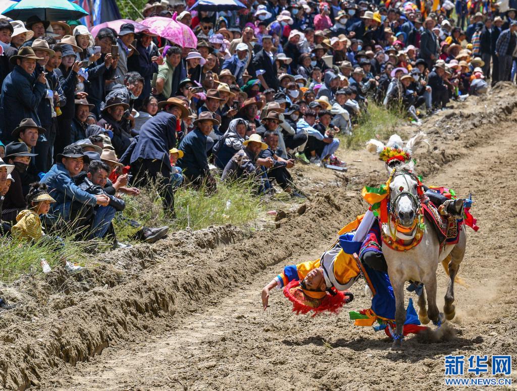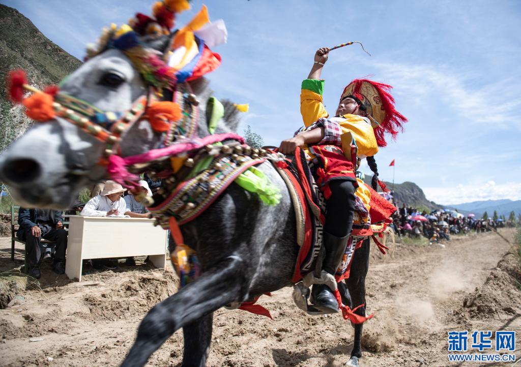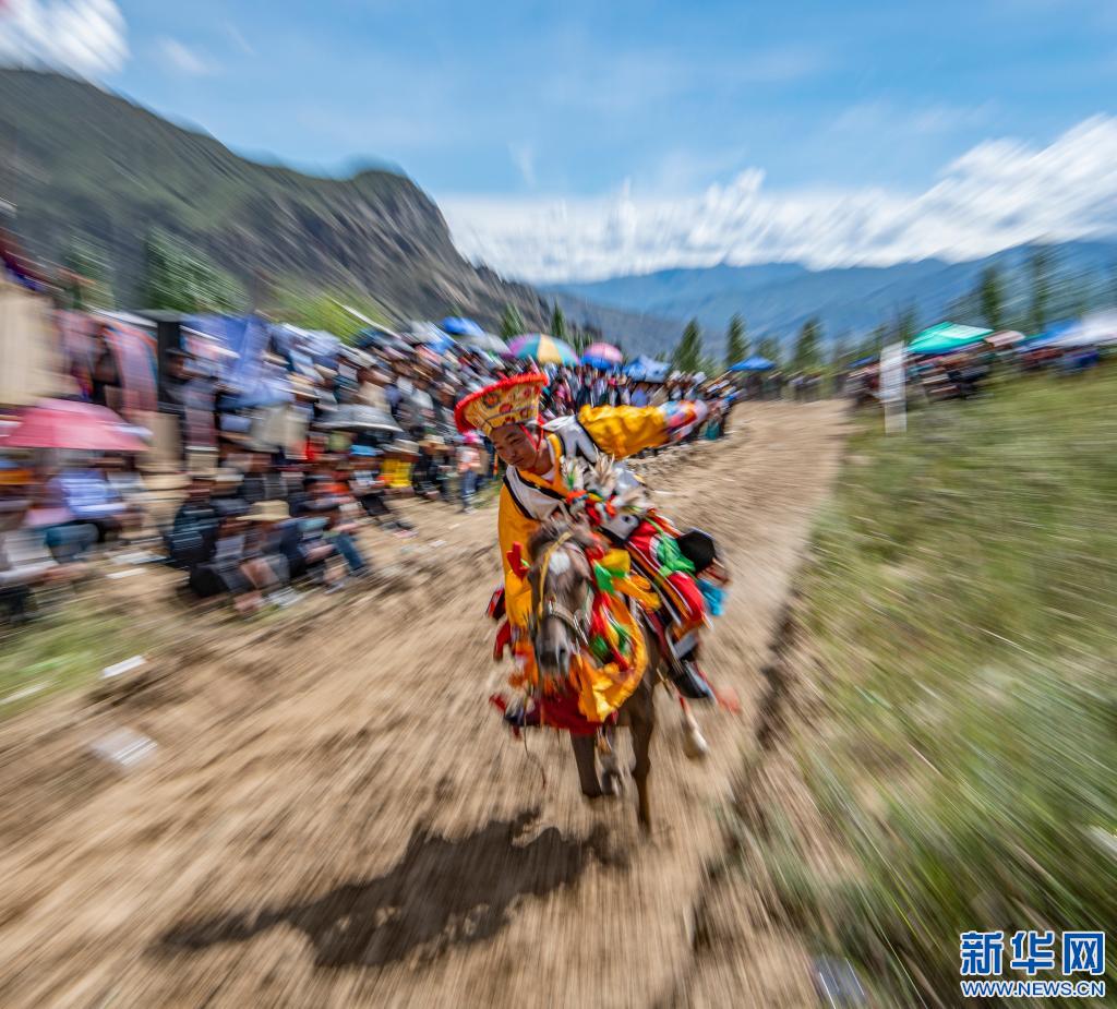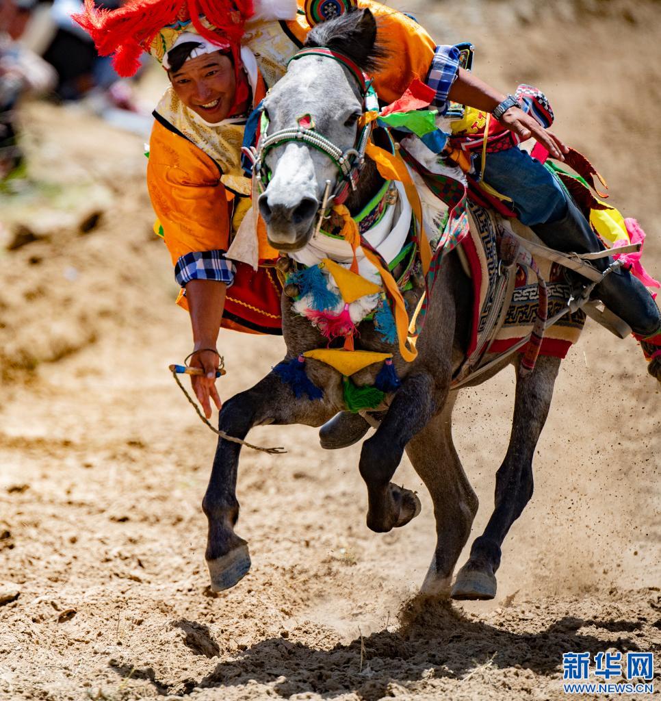 當(dāng)日,位于雅魯藏布江畔山谷里的西藏山南市貢嘎縣昌果鄉(xiāng)崗旦村舉行一年一度的賽馬,迎接即將到來(lái)的收獲季節(jié)。