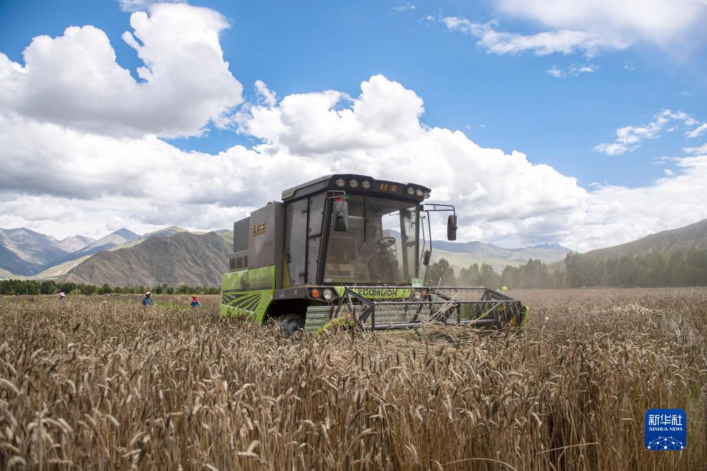 當(dāng)前正值青稞收獲季節(jié),拉薩河谷一帶農(nóng)民抓緊收割,農(nóng)田里一片豐收的繁忙景象。