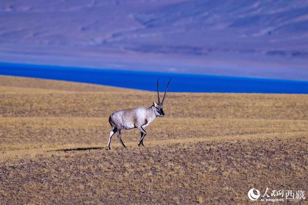 藏羚羊在色林錯湖畔。徐馭堯攝