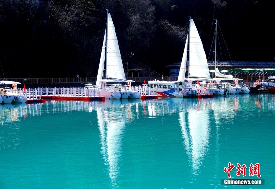 12月2日,巴松措湖水綠如翡翠,清澈透亮,帆船靜泊湖邊。巴松措位于西藏林芝,是西藏海拔最低的大湖。 中新社記者 冉文娟 攝
