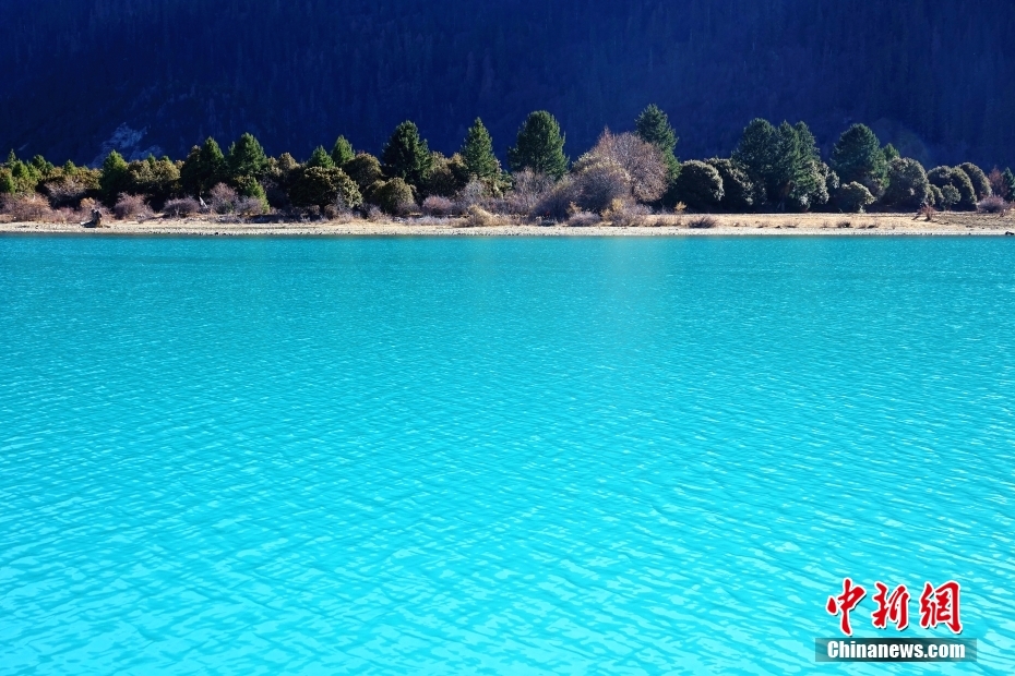 12月2日,巴松措湖水綠如翡翠,清澈透亮,美不勝收。巴松措位于西藏林芝,是西藏海拔最低的大湖。 中新社記者 冉文娟 攝