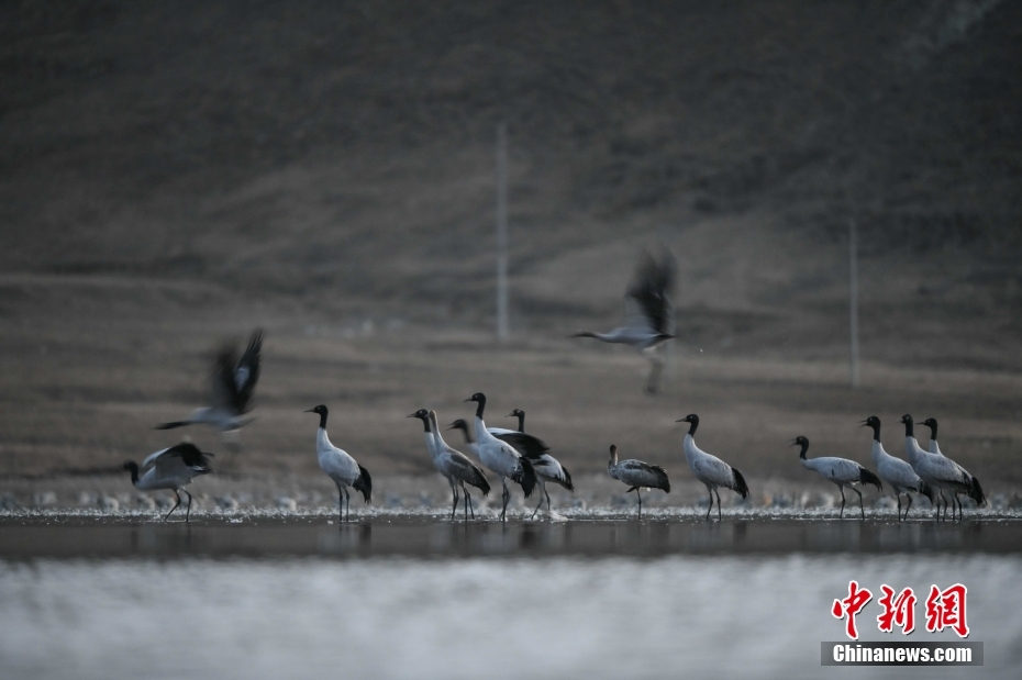 11月23日,在西藏自治區(qū)拉薩市林周縣春堆鄉(xiāng)虎頭山水庫黑頸鶴群覓食。由于適宜的環(huán)境和充足的食物,冬季的拉薩市林周縣成了越來越多黑頸鶴聚集的家園。[詳細(xì)] -