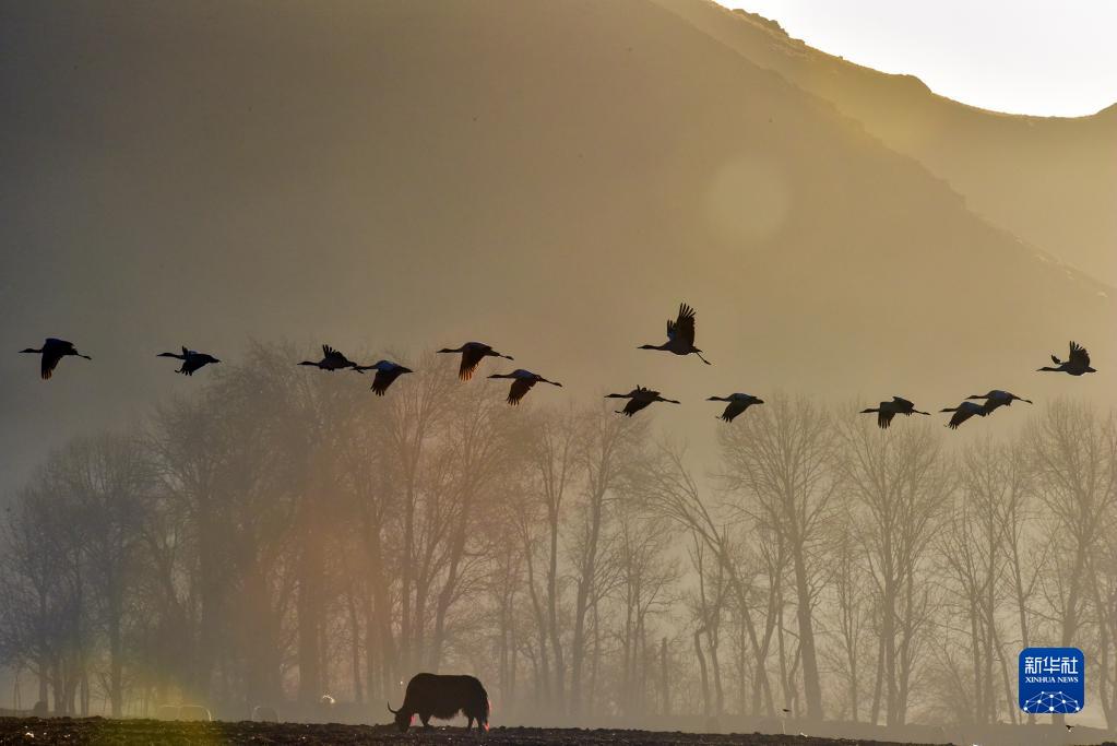 國家一級保護動物黑頸鶴,是唯一生長、繁殖在高原的鶴類。每年冬季,大批黑頸鶴從繁殖地遷徙到西藏雅魯藏布江中游河谷地帶越冬,它們會在河谷、農(nóng)田、沼澤地里覓食嬉戲,享受冬日暖陽。[詳細]