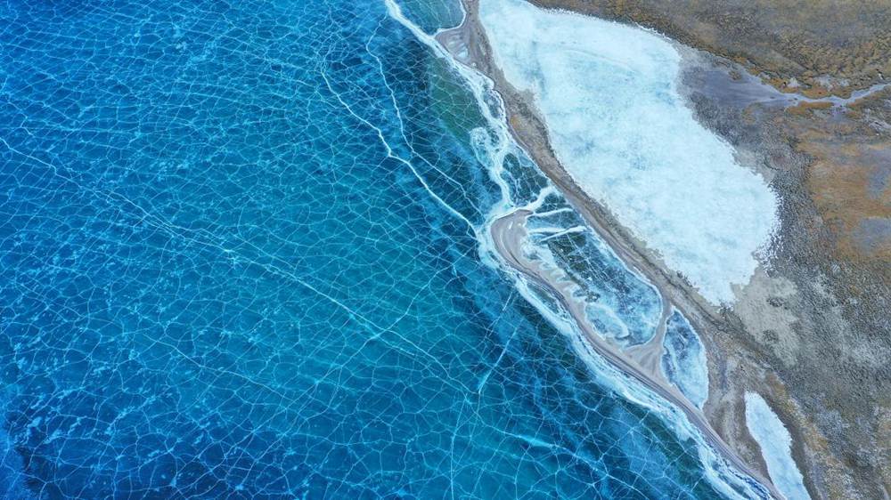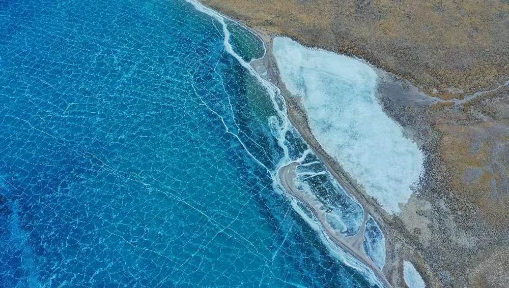 位于西藏山南市洛扎縣和浪卡子縣交界處的普莫雍錯,是喜馬拉雅山脈間的一個咸水湖,湖面海拔5070m。冬季的普莫雍錯湖面會結(jié)冰,冰面通透可見湖底,在陽光的照射下,呈現(xiàn)出動人心魄的藍。
