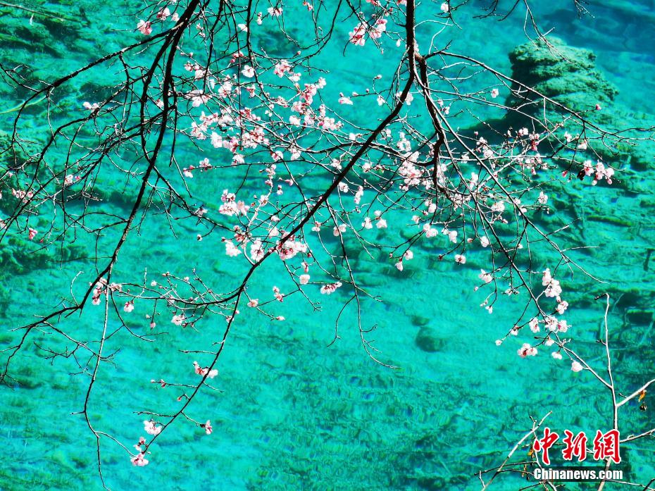 3月的九寨溝春回大地,暖陽(yáng)怡人,遍布河谷、湖畔、山腰的九寨扁桃花迎風(fēng)綻放,花期正當(dāng)時(shí)。梁楓 攝