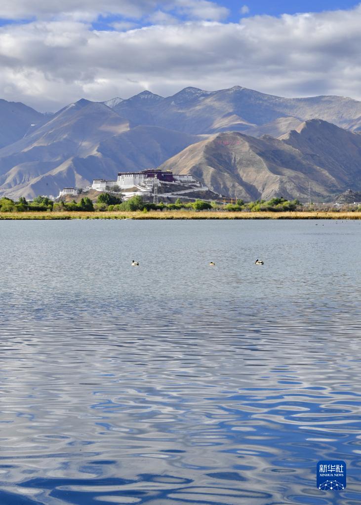 水中的布達拉宮倒影(5月7日攝)。新華社記者 覺果 攝